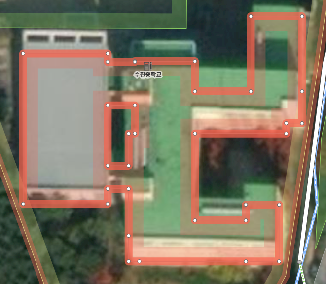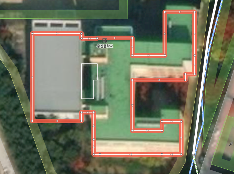위 사진의 건물을 예시로 iD 편집기에서 다중 다각형을 어떻게 그리는지 설명드리도록 하겠습니다.