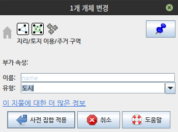 여기서도 마찬가지로 사전 설정을 이용할 수 있습니다. '인공물→인공물→주거용 건물'로 들어간 후, 적절한 값(주거용 건물, 아파트, 단독주택, ...)을 입력하세요.